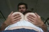 Ze showt haar enorme tieten en mastubeerd haar natte kut met sex toys